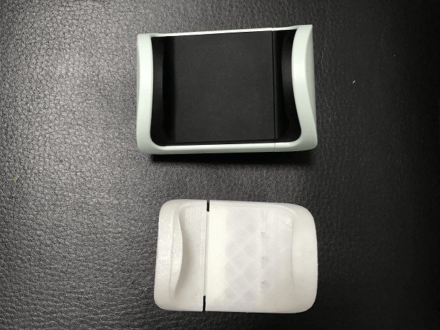 3D打印手機(jī)殼白模展示,對(duì)比實(shí)物圖,可以看得出來,大小尺寸經(jīng)過研發(fā)工程師的修改,更合適配套新款手機(jī)尺寸。