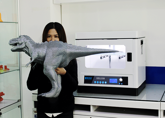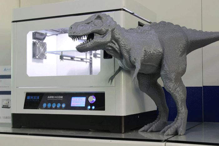 大恐龍是怎么3D打印出來的?極光爾沃的恐龍愛好者介紹:“其實也沒想象中那么難,只需要建好模型,用軟件轉一下代碼,就可以3D打印出來了,如果不會建模,也可以直接到一些3D云平臺下載,素材也相當豐富,差不多都可以找到自己想要的模型。”